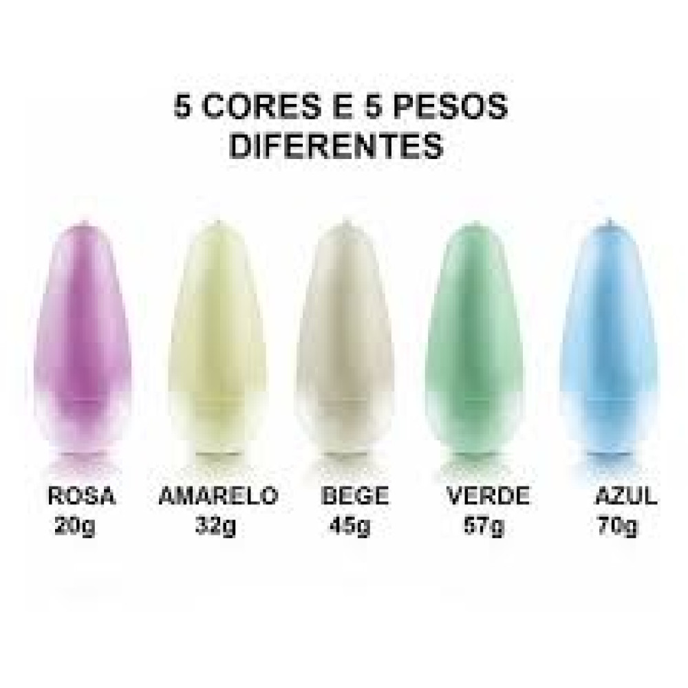 O Pompoarismo é uma técnica oriental antiga, utilizada por mulheres, que consiste em contrair e relaxar a musculatura do períneo, buscando explorar com maior intensidade a satisfação sexual. Contém: 1 Cone Rosa 20g; 1 Cone Amarelo 32g; 1 Cone Marfim 45g; 1 Cone Verde 57g; 1 Cone Azul 70g; Embalagem: Blister abre e fecha personalizado com folder exclusivo mais bula. |
